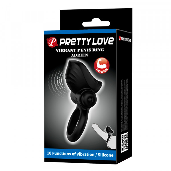 Кольцо эрекционное с большим клиторальным стимулятором"Pretty Love" с вибрацией, черное