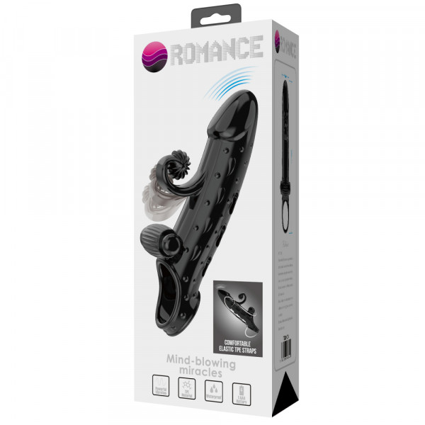 Насадка-удлинитель с вибрацией и клиторальным стимулятором "Romance" черная
